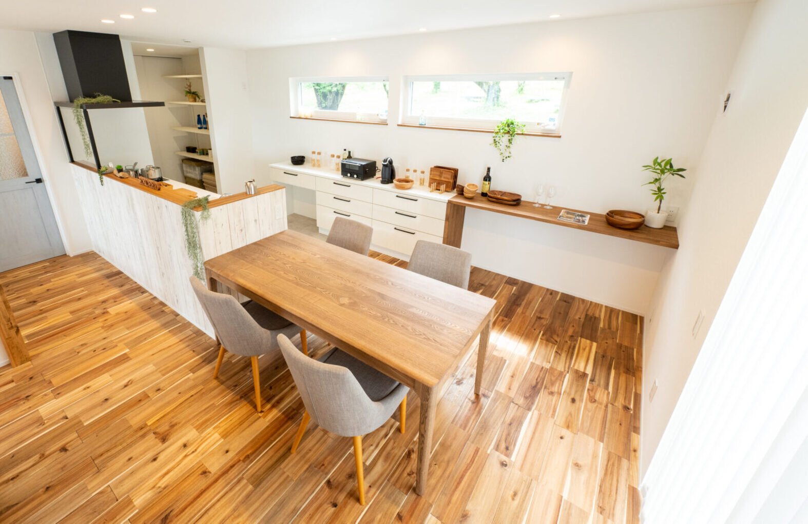 広々としたLDKの一角に設けられたスタディールームは、家族の気配を感じながらも集中できる絶妙な距離感。リビング学習はもちろん、在宅ワークや読書スペースとしても活躍。空間に“もう一つの居場所”をつくることで、家族それぞれの時間を大切にしながら過ごせる、今の時代にぴったりの住まいです。