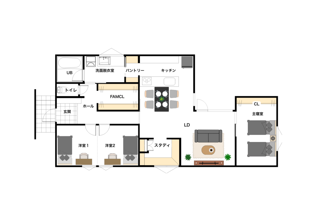 パパ・ママ安心の生活回遊動線バツグンの平屋